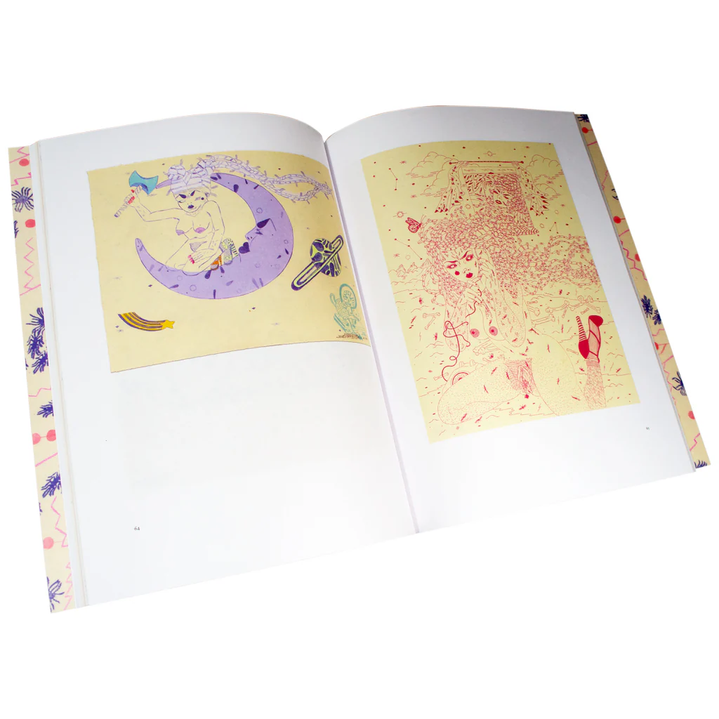 Cavegirl Monologue is Benjaminâs most substantial collection to date and the works range from the most minuscule of talismans to larger than life representations of female creatures. Much of the art in this collection is new and unreleased, but it also contains a selection from her artistâs books and foldout zines, including the recentâŻRomantic StoryâŻcollection that was wildly popular and is now out of print. It also contains paintings from her 2017 debut solo exhibition at Dress Shop in Brooklyn. The images compiled here are intended to be displayed together, all falling under the umbrella of her most recent work but also providing an integral passage in the cavegirlâs monologue.